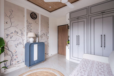 The dining space seamlessly integrates functionality with style, highlighted by elegant finishes and thoughtful storage solutions that maintain visual harmony. Bedrooms are designed as serene retreats, with soothing colour palettes, minimal detailing, and smart wardrobe designs that maximise space while maintaining a soft, luxurious feel.